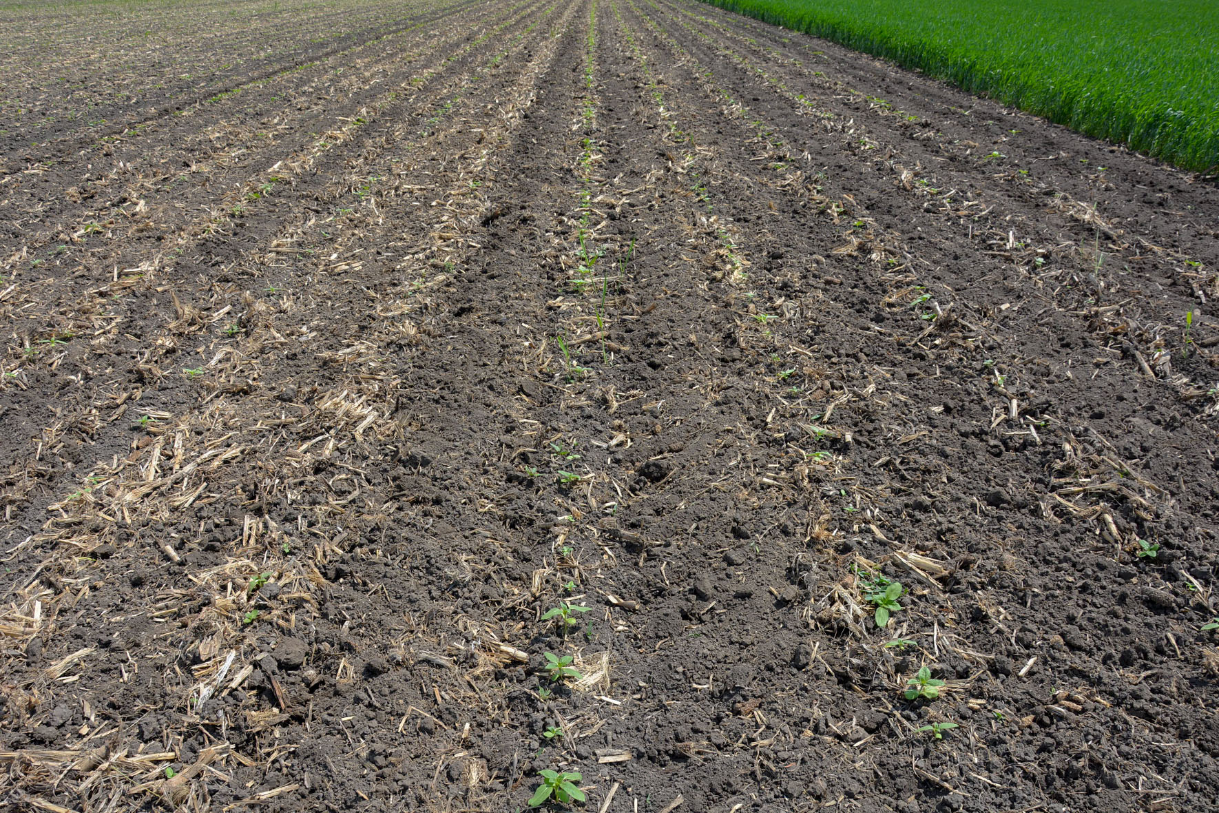 Gazdaságunk a forgatás nélküli talajművelés elkötelezett híve, ahol a mulcs, a sorközművelést megnehezíti, míg ez az eszköz, gyönyörűen dolgozott a nagy szármaradványt hagyó kukorica előveteményben a napraforgó kelésében. Azért is mondom így, mert megfelelő beállítás, és sebesség megválasztása mellett a szikleveles napraforgóban is lehetett alkalmazni, bár egy sorvédő tárcsa nagyban megkönnyítette, illetve nagyobb sebességgel való munkavégzést is lehetővé tett volna. Az állomány fejlődése során, ez már nem okozott problémát, sőt a nagyobb sebességgel történt munkavégzés lehetővé tette, hogy a kultúrnövény sorába töltögetést végezzen, illetve, a kelő gyomokat földel betakarja, megakadályozva azok fejlődését, illetve pusztulásukat okozzon. A gép, a mélyről gyökerező, illetve agresszív gyomokkal is elbánjon, ami a hagyományos szerelésű kultivátoroknak nehézséget, illetve gyenge minőségű munkát eredményezett. Gondolok itt a nádra, acatra, illetve margarétára. A kultivátor, ami az útjába került, gyönyörűen kiszedte, és az esetleges új hajtások már nem okoztak gazdasági kárt, mert a napraforgólevelek már lefedték a sorok közét.