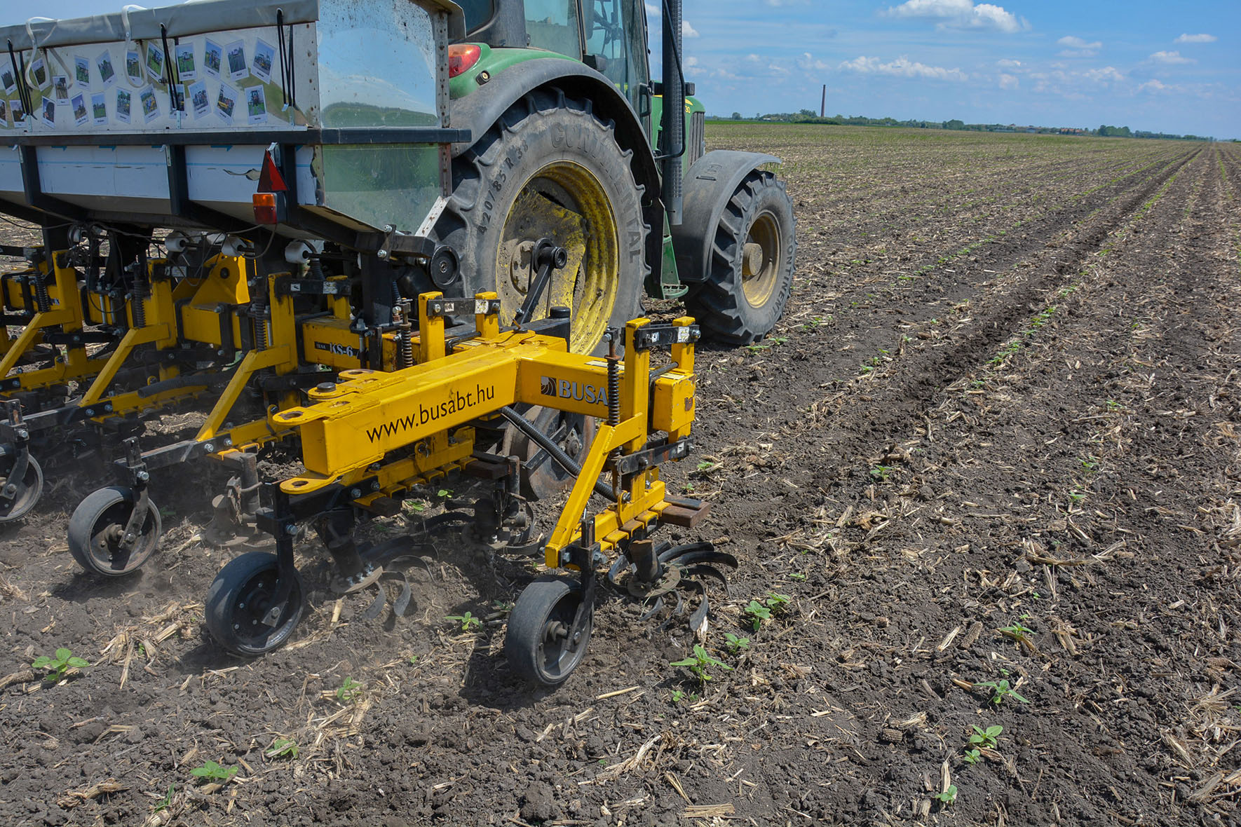 2016-ban egy hat soros kultivátort próbáltunk ki, majd a kiváló munkájának és a jövőben kultivátorozni szánt terület nagyság miatt egy 12 soros gép megrendelésre is került. A kultivátor, a mi igényeinknek, és elvárásunknak megfelelően dolgozott.