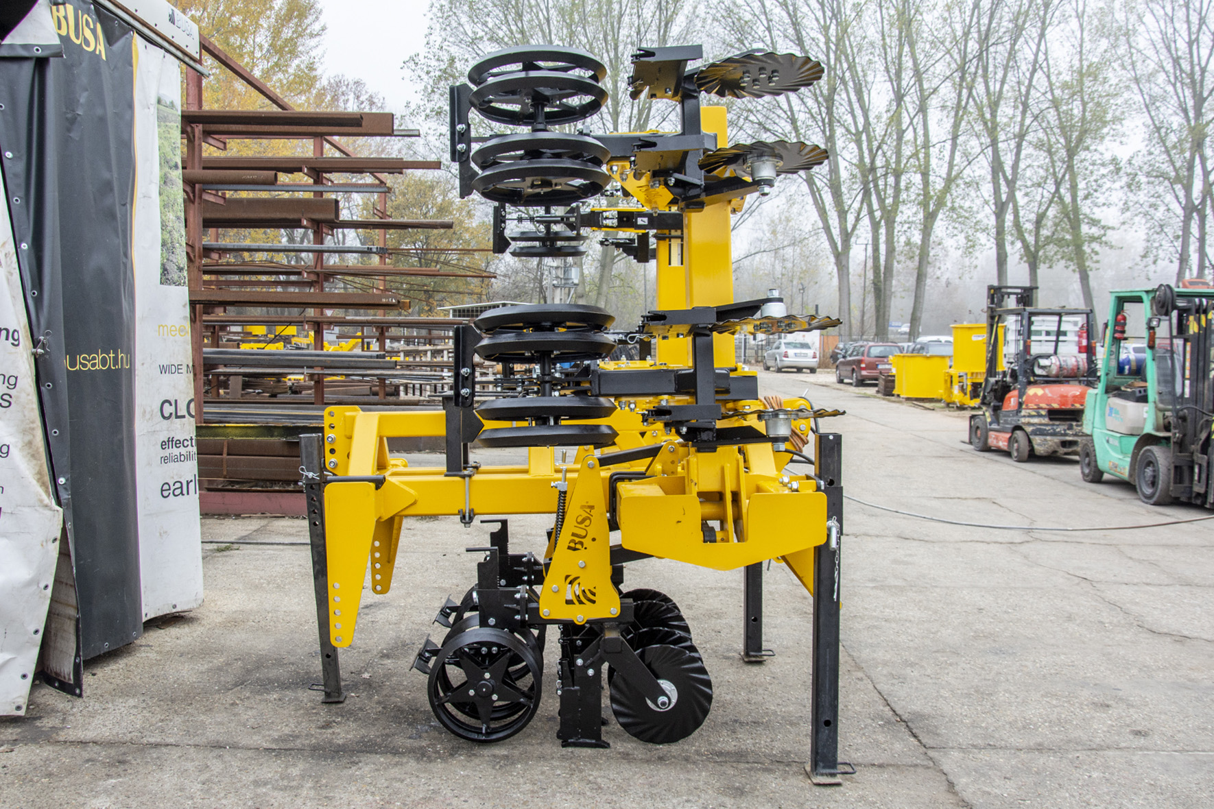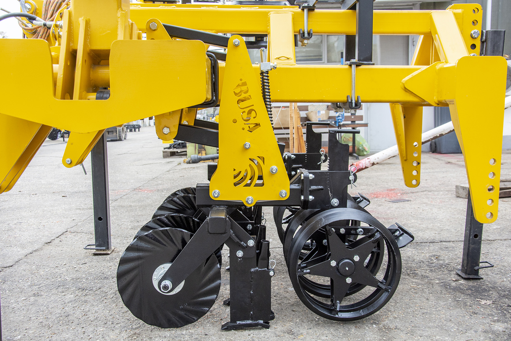 Ezt a vázat kifejezetten direktvetés támogatására hoztuk létre. Direktvetéshez nagy csoroszlyanyomás kell. A nagy csoroszlyanyomás értelemszerűen nagy terhelést jelent a gépvázra, a vetőelemre. Amerikában vannak ilyen vetőelemek, vetőgépek, de ezek a gépek nem az Európai piacra termettek, arrafelé a kis gép 12 sort és 4,5 m szállítási szélességet jelent. Európában vannak flexibilis gépek, állítható sortávval, de azok művelt talajra születtek. Lehet mondani, hogy gyengék, de csak másra lettek tervezve. A kettő ötvözésére született a BUSA PPV-6 váz. Szabadalmaztatott csúszó rendszere segítségével ott állítjuk meg a művelőelemeket, ahol akarjuk 40 cm-től 76,2 cm-ig. A váz közel 2 tonna, így a 300 kg lenyomóerő nem jelent gondot. A brutális váz garantáltan tartani fogja a vetőkocsikat precízen, holtjáték nélkül.